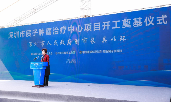 2019年12月28日,深圳市人民政府副市長吳以環(huán)在質(zhì)子腫瘤治療中心項目開工奠基儀式上講話。